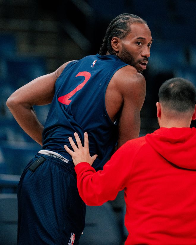 快船队首发阵容:哈登、邓恩、莱纳德、科林斯、祖巴茨